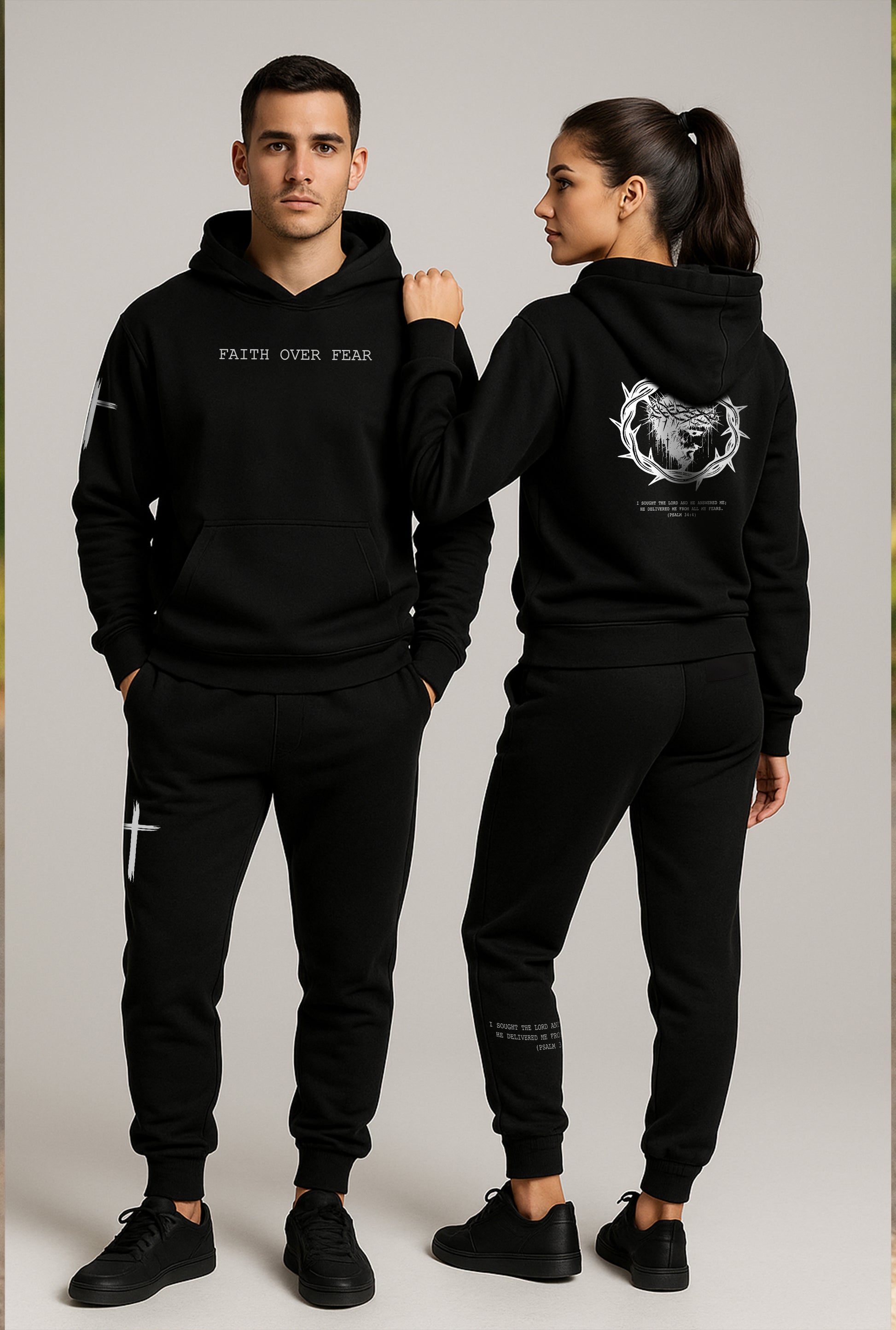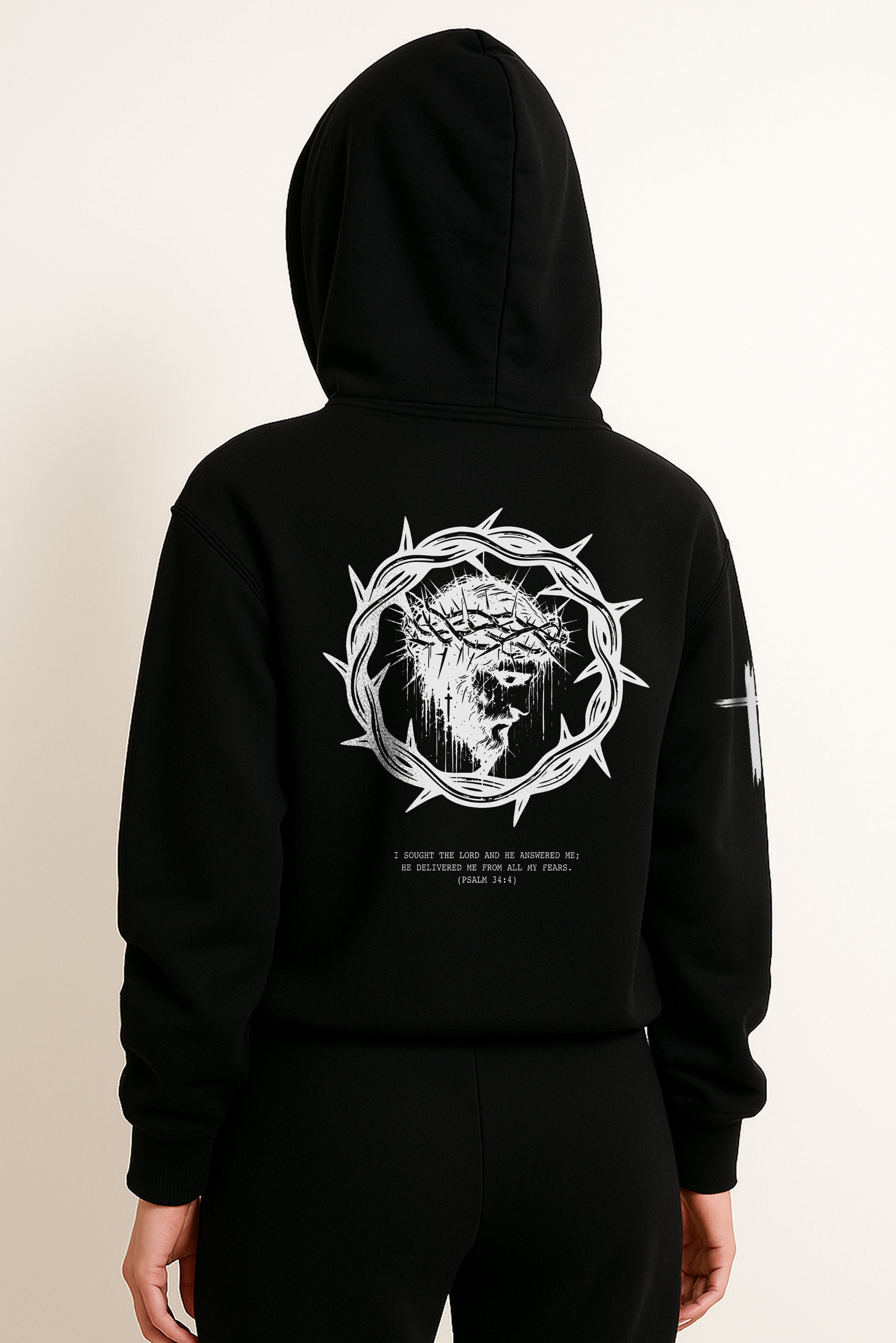Embrace comfort and courage with our Faith Over Fear Black Hoodie. Featuring a sleek design with a bold back print and subtle front cross detail, this hoodie keeps you warm while reminding you to lead with faith. Made from soft, durable fabric with a hooded neckline, it’s a staple for every believer’s wardrobe. Wear it proud—faith is always in fashion.